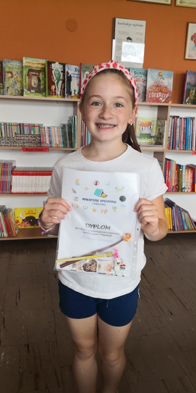 Jednocześnie składamy gratulacje dla Kornelii, która jako jedyna uczennica naszej szkoły wzięła udział w wakacyjnym wyzwaniu z biblioteką. Wykonała wszystkie zadania z karty i zebrała pieczątki.