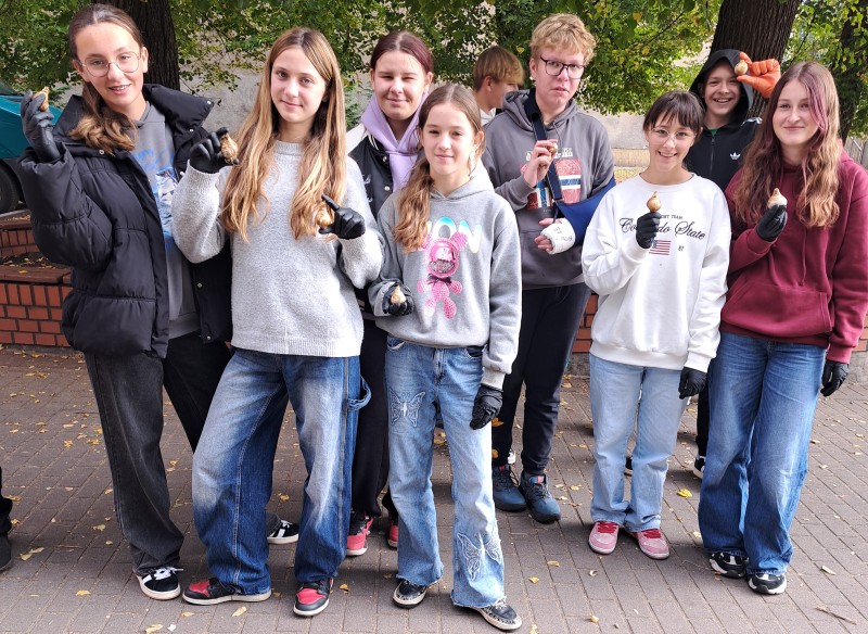 Dnia 13. października uczniowie klasy 4c i 7c wraz z wychowawcami i nauczycielem biologii dołączyli do ogólnopolskiej akcji "Pola nadziei", wspierając Hospicjum św. Kamila w Gorzowie Wlkp. W imieniu całej społeczności szkolnej posadzili na terenie szkoły żonkile. Wiosną czekamy, aż zakwitną i będą nas zachwycać swoim wyglądem.