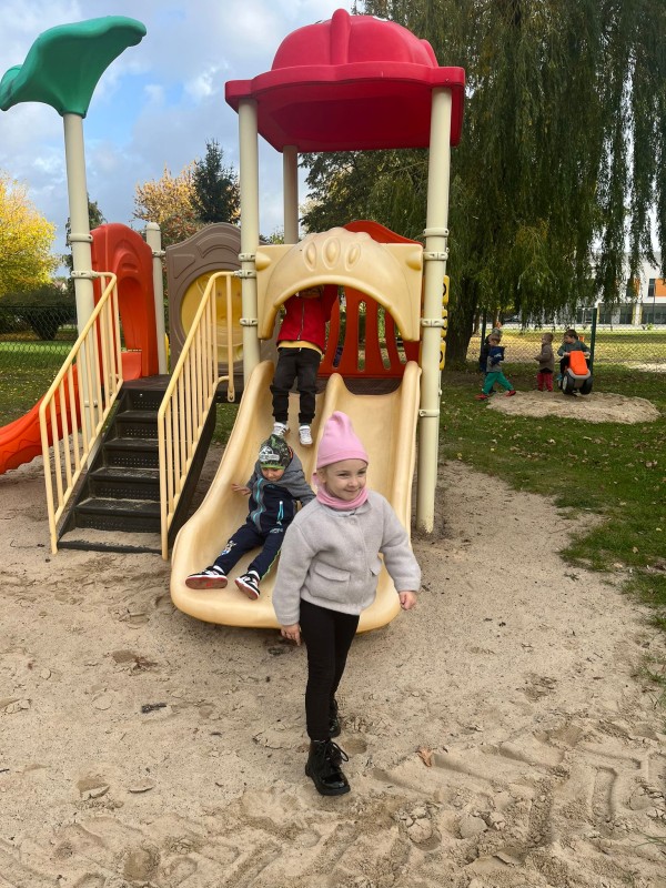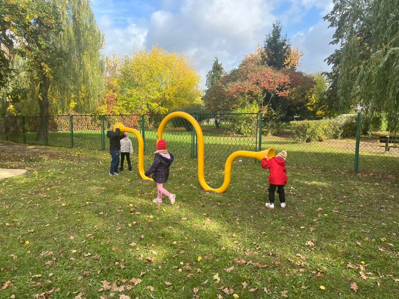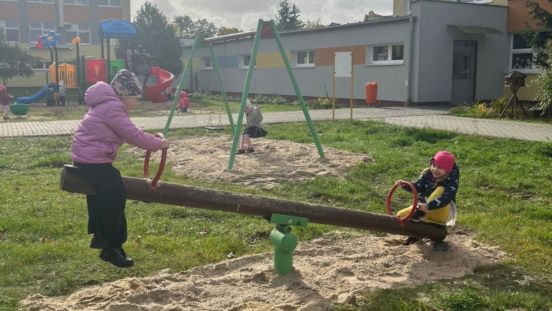 W październiku placówka przy ul. Mickiewicza 26 zyskała kolejne sprzęty terenowe na przedszkolnym placu zabaw. Dzieci z grupy Krasnale miały możliwość skorzystania z ładnej pogody i wypróbowania nowych atrakcji.