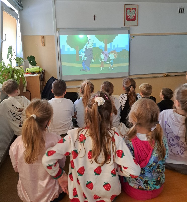 28.10.2025 r. uczniowie klas I naszej szkoły wzięli udział w spotkaniu z funkcjonariuszkami policji z Komendy Powiatowej w Międzyrzeczu. Tematem rozmowy było bezpieczeństwo dzieci w drodze do i ze szkoły oraz zasady właściwego zachowania się w kontaktach z osobami nieznajomymi.