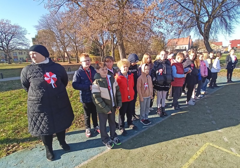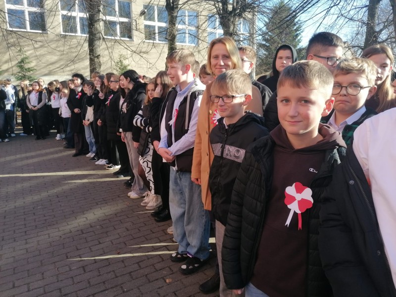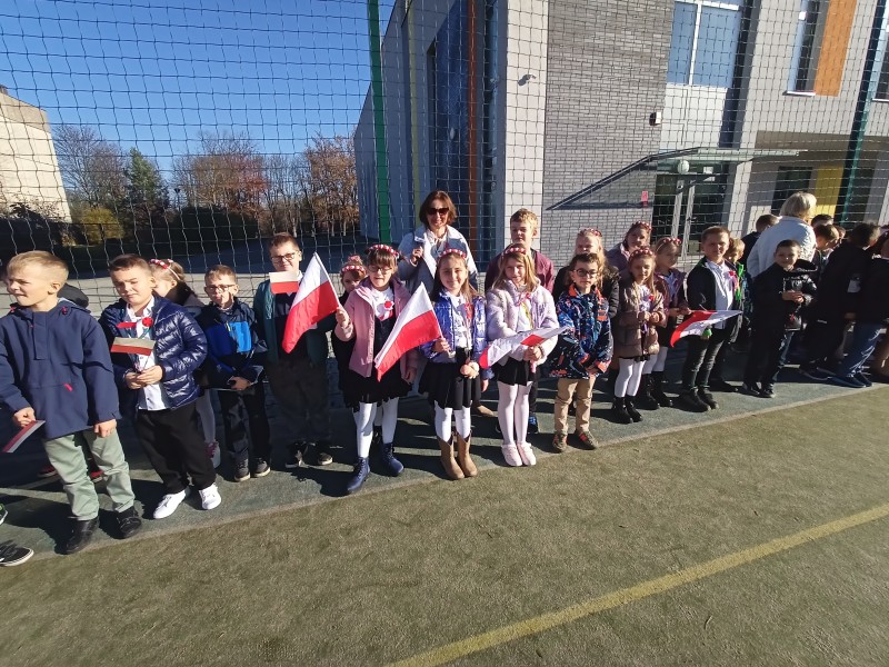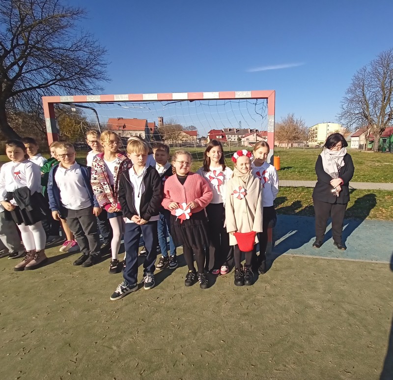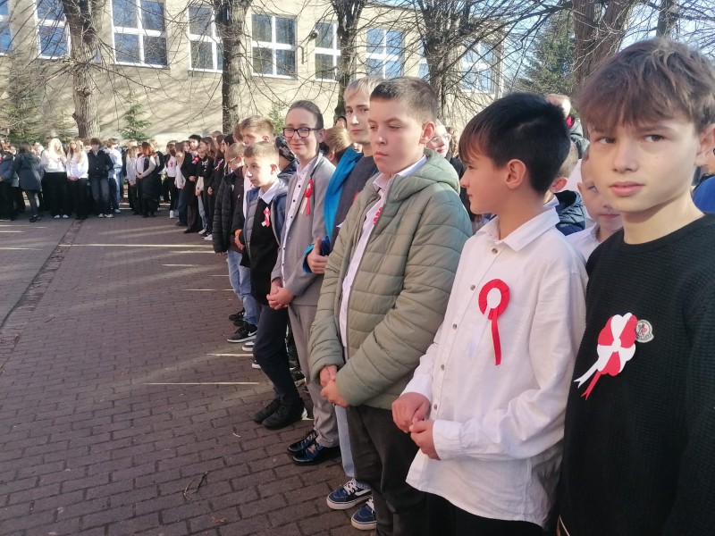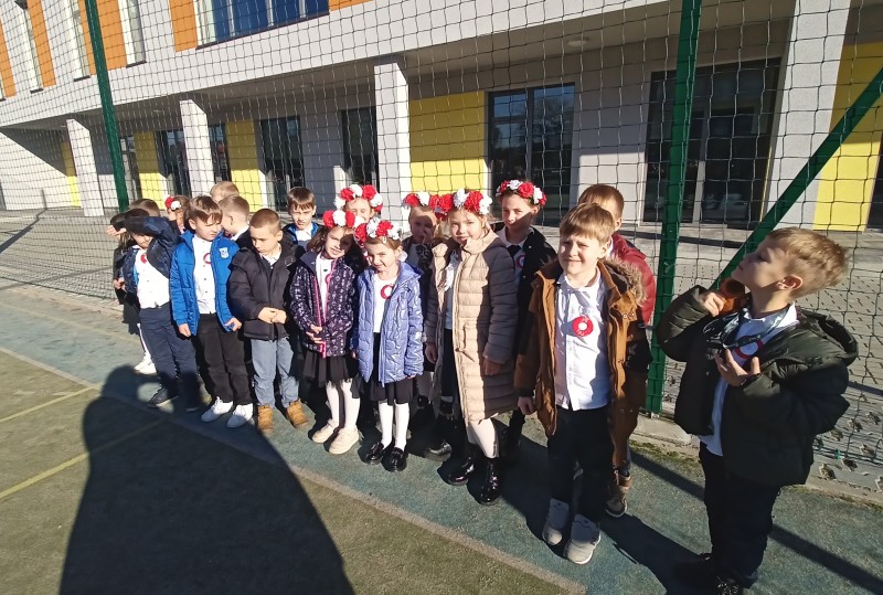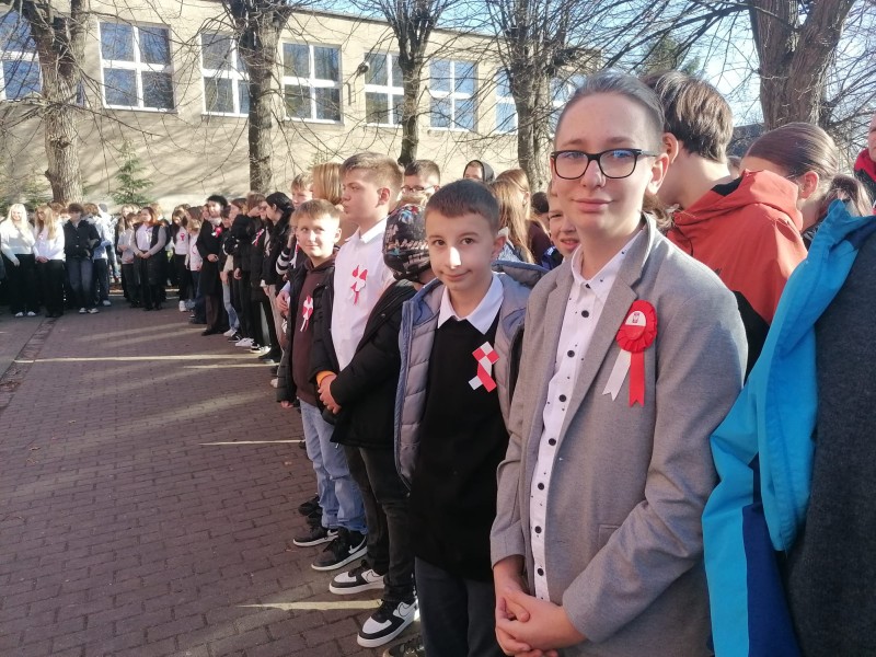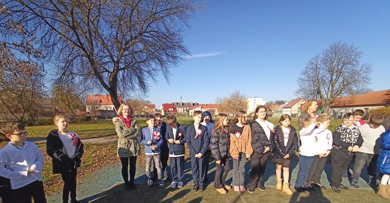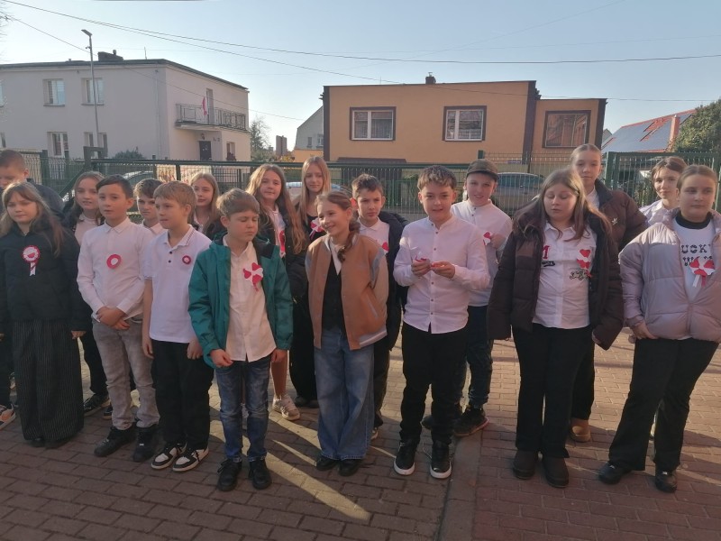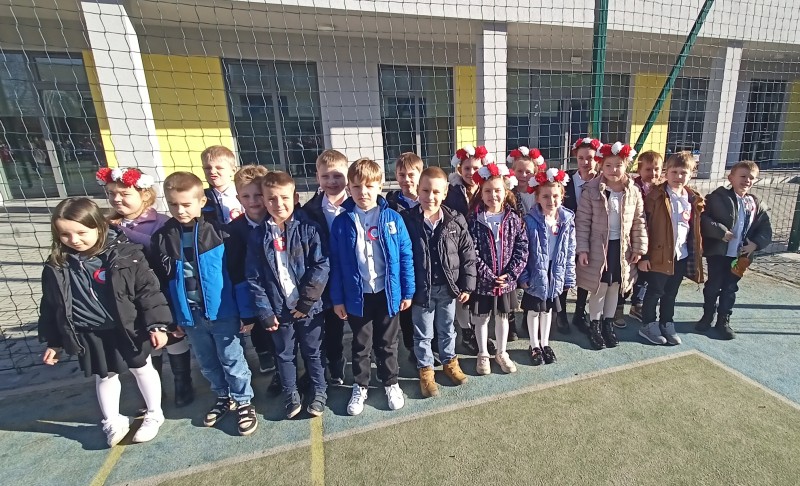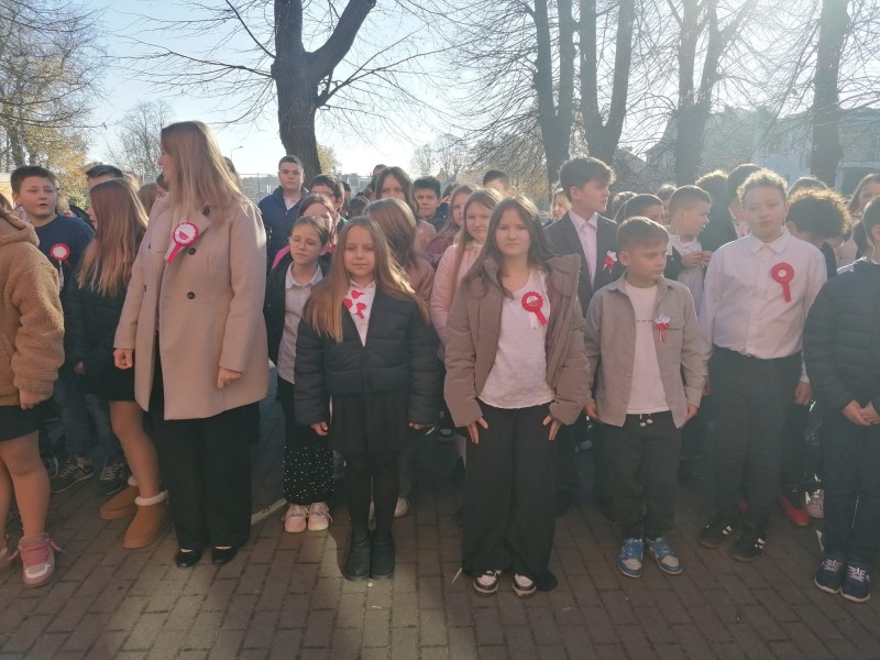 W dniu 7 listopada wszyscy uczniowie klas I-VIII naszej szkoły wzięli udział w uroczystym upamiętnieniu Święta Niepodległości. Tego dnia cała społeczność szkolna wystapiła w strojach galowych, z przypiętymi kotylionami w barwach narodowych, oddając w ten sposób hołd tym, którzy walczyli o wolną Polskę.