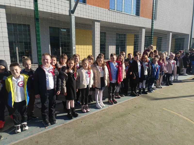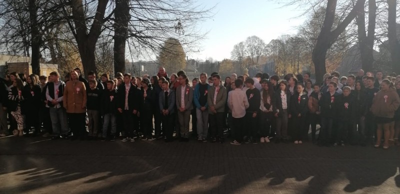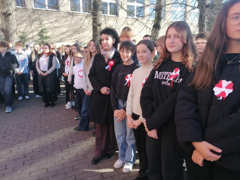 O godzinie 11:11 na placu apelowym odśpiewaliśmy hymn państwowy- "Mazurek Dąbrowskiego" – w ramach ogólnopolskiej akcji "Szkoła do hymnu".