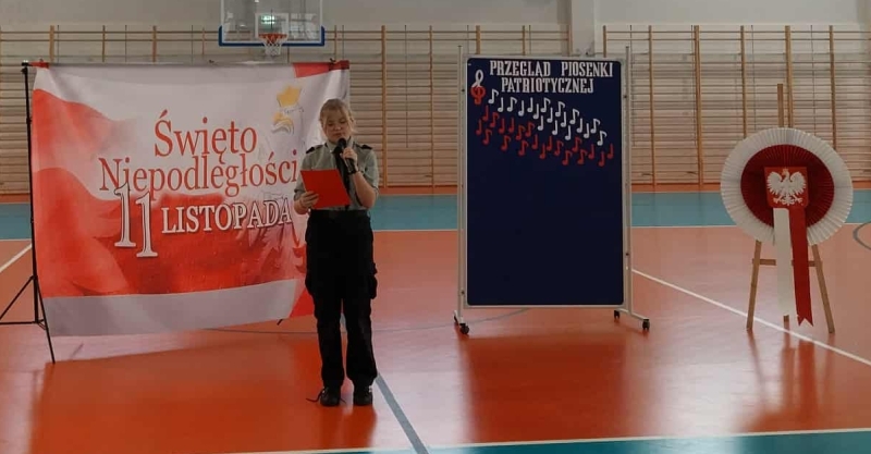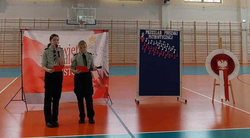 W piątek14 listopada uczniowie klas 1-3 spotkali się na kolejnym Przeglądzie Piosenki Patriotycznej pod patronatem 56 DH "Grom". Nasze spotkanie poprowadziły harcerki Dagmara i Julia.