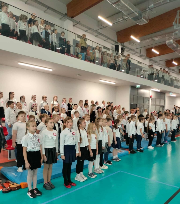 Wydarzenie rozpoczęło się wspólnym, uroczystym odśpiewaniem hymnu narodowego, po którym uczniowie klas drugich zaprezentowali program artystyczny. Wybrane dzieci recytowały wiersze o niepodległości, podkreślając znaczenie wolności, historii i symboli narodowych.
