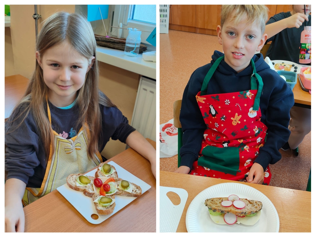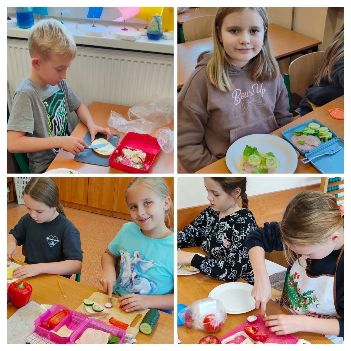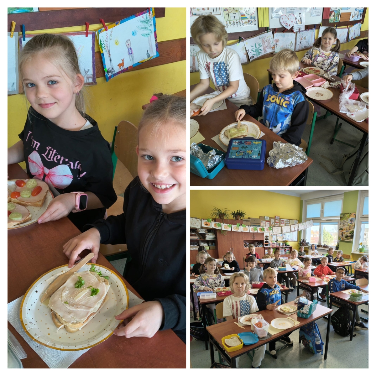 W dniu 12.11.2025 r. obchodziliśmy w naszej szkole Światowy Dzień Zdrowego Śniadania. Z tej okazji śniadanie wyglądało inaczej niż zwykle. Od samego rana przygotowywane były produkty, z których uczniowie w trakcie śniadania komponowali pyszne i zdrowe kanapki.