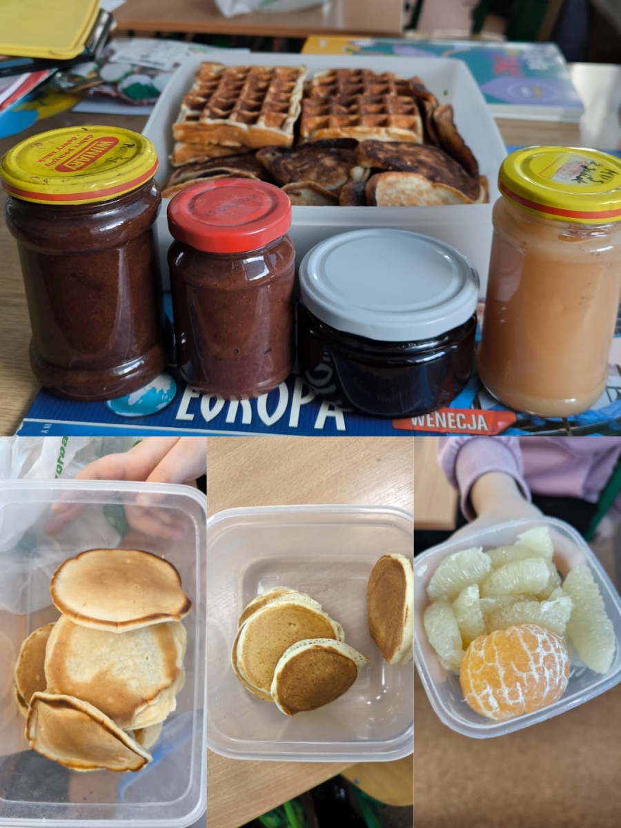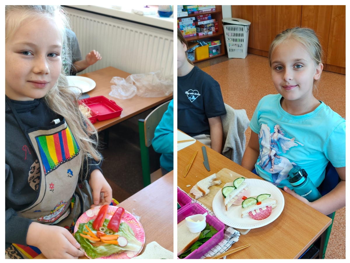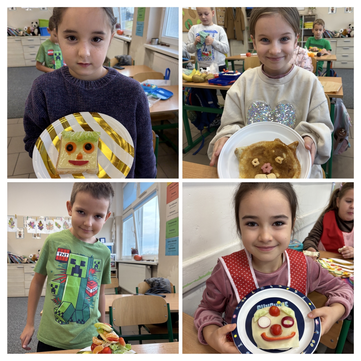 W dniu 12.11.2025 r. obchodziliśmy w naszej szkole Światowy Dzień Zdrowego Śniadania. Z tej okazji śniadanie wyglądało inaczej niż zwykle. Od samego rana przygotowywane były produkty, z których uczniowie w trakcie śniadania komponowali pyszne i zdrowe kanapki.