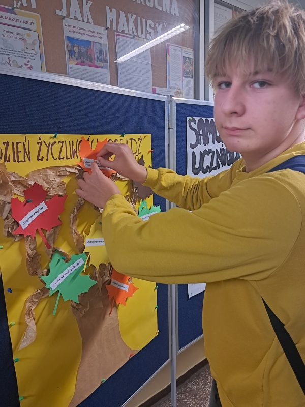 21 listopada obchodziliśmy w naszej szkole Dzień Życzliwości – wyjątkowe święto promujące pozytywne postawy, szacunek i serdeczność wobec innych. Tego dnia szkolne korytarze wypełniły się żółtym kolorem – symbolem radości, ciepła i optymizmu.