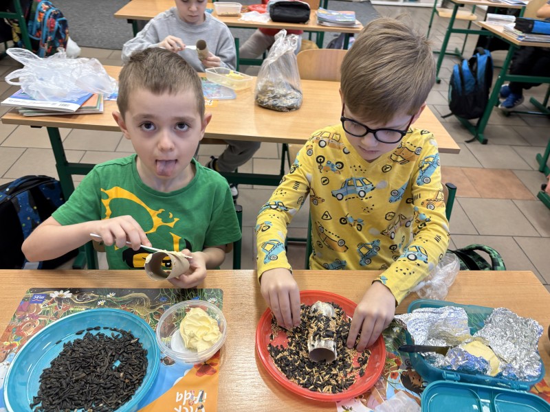 Uczniowie klasy 1b Szkoły Podstawowej w Skwierzynie mieli dziś wyjątkowo twórcze zajęcia. Z rolek po papierze toaletowym oraz ziarenek wykonali własnoręcznie karmniki dla ptaszków. Podczas pracy dzieci uczyły się, jak pomagać ptakom w okresie zimowym oraz jak wykorzystywać materiały z recyklingu w praktyce.