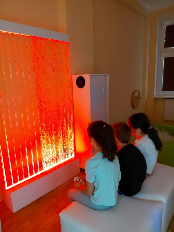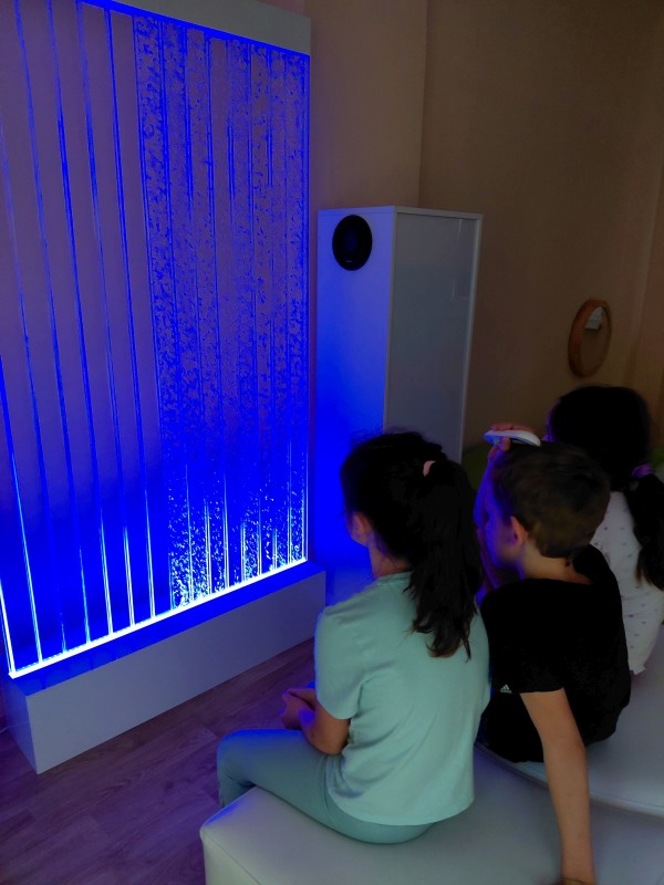 W ramach zajęć w projekcie "Równy Start II", współfinansowanego z Europejskiego Funduszu Społecznego Plus, pt. "Doświadczanie świata - zajęcia sensoryczne, edukacyjno-rehabilitacyjne" dzieci m.in. poznają, jak kolory i światło wpływają na nasze emocje.
