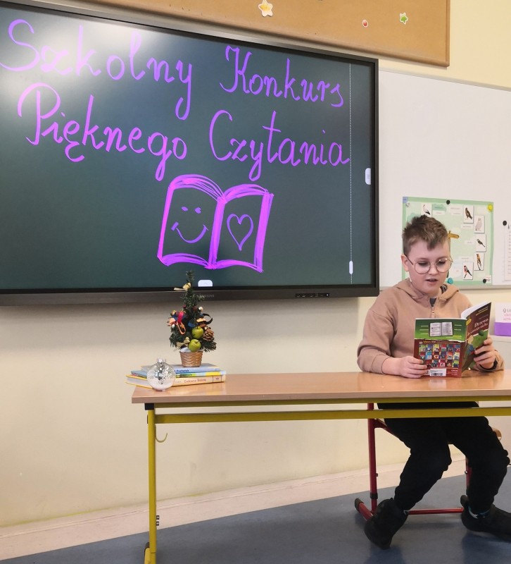 10 grudnia 2025 r. w naszej szkole odbył się "Szkolny Konkurs Pięknego Czytania". Uczestnikami byli uczniowie klasy III, którzy mieli za zadanie przeczytać na głos wylosowany fragment książki. Jury oceniało dykcję, tempo czytania, ton głosu, a także umiejętność oddania emocji zawartych w tekście.