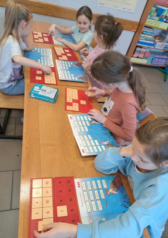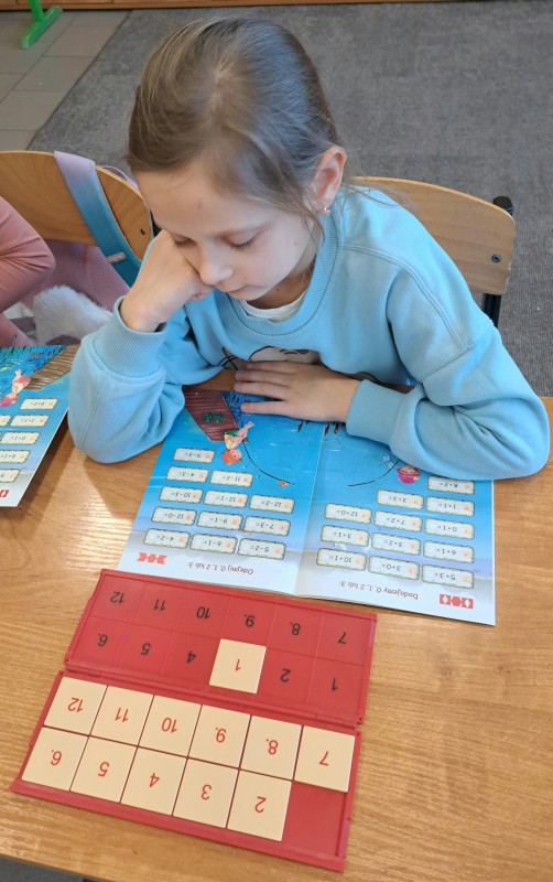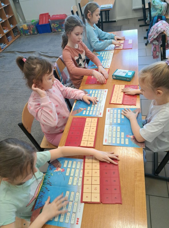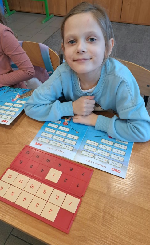 Tym razem podczas zajęć "W świecie liczb i liter" realizowanych w projekcie "Zespół Edukacyjny w Skwierzynie - Równy Start II", który jest współfinansowany z Europejskiego Funduszu Społecznego Plus, wykorzystany został popularny polski system edukacyjny PUS – Pomyśl – Ułóż – Sprawdź.