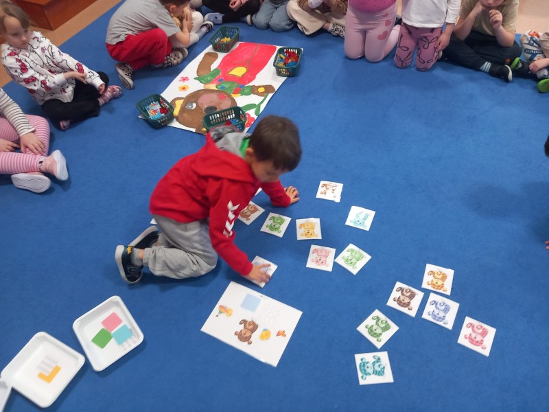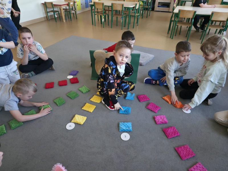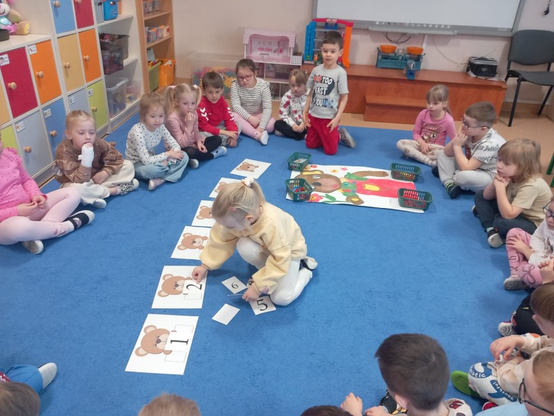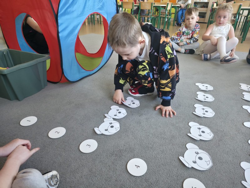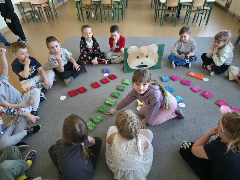 W ten dzień przedszkolaki rozwijały swoje matematyczne kompetencje na wiele sposobów, a wszystkiemu towarzyszył Miś Uszatek.
