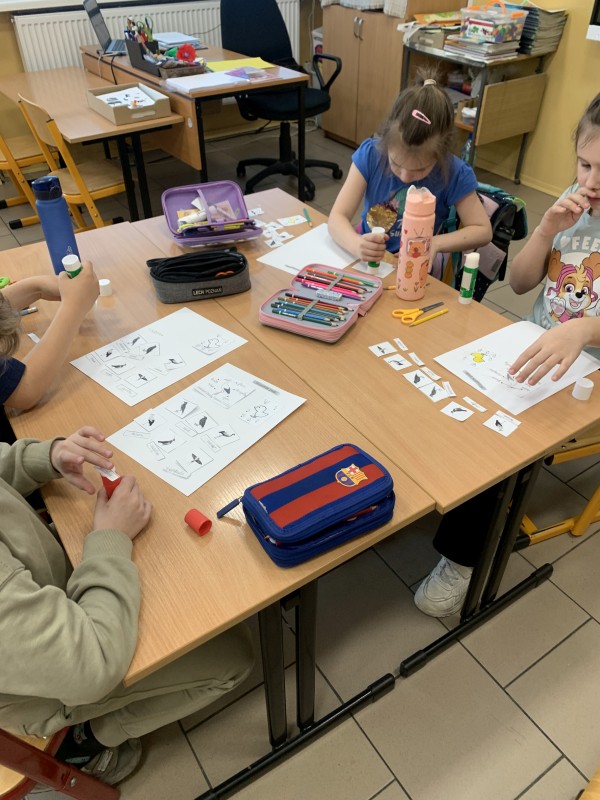 Uczniowie klas pierwszych aktywnie uczestniczą w zajęciach "Mały Przyrodnik" realizowanych w projekcie "Równy Start II", współfinansowanym z Europejskiego Funduszu Społecznego Plus, które odbywają się raz w tygodniu. Podczas ostatnich zajęć w marcu uczniowie pracowali w grupach, tworząc z kół origami pierwsze wiosenne kwiaty – przebiśniegi.