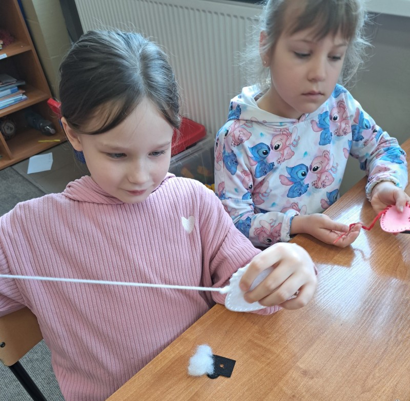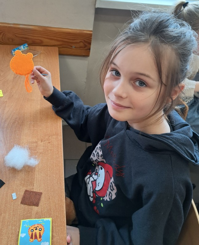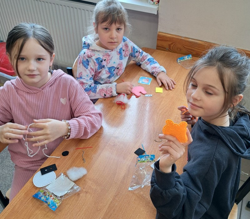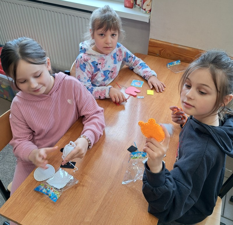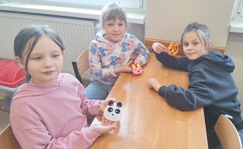 W ramach zajęć "Terapii ręki" realizowanych w projekcie "Zespół Edukacyjny w Skwierzynie - Równy Start II", który jest współfinansowany z Europejskiego Funduszu Społecznego Plus, dzieci tym razem wykonywały prace manualne z wykorzystaniem gotowych elementów do rękodzieła dla początkujących. Ich zadaniem było stworzenie modnych zawieszek oraz wisiorków do torby lub plecaka z wizerunkami zwierząt.
