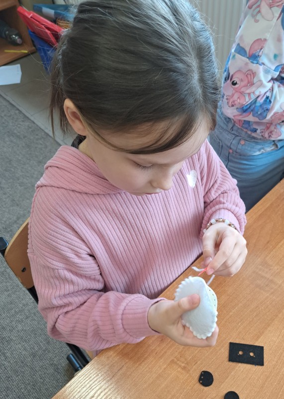 Zajęcia rozwijały sprawność manualną, koordynację wzrokowo-ruchową oraz cierpliwość i koncentrację. Dzieci z dużym zaangażowaniem wykonywały zadania, wykazując się kreatywnością i samodzielnością.
